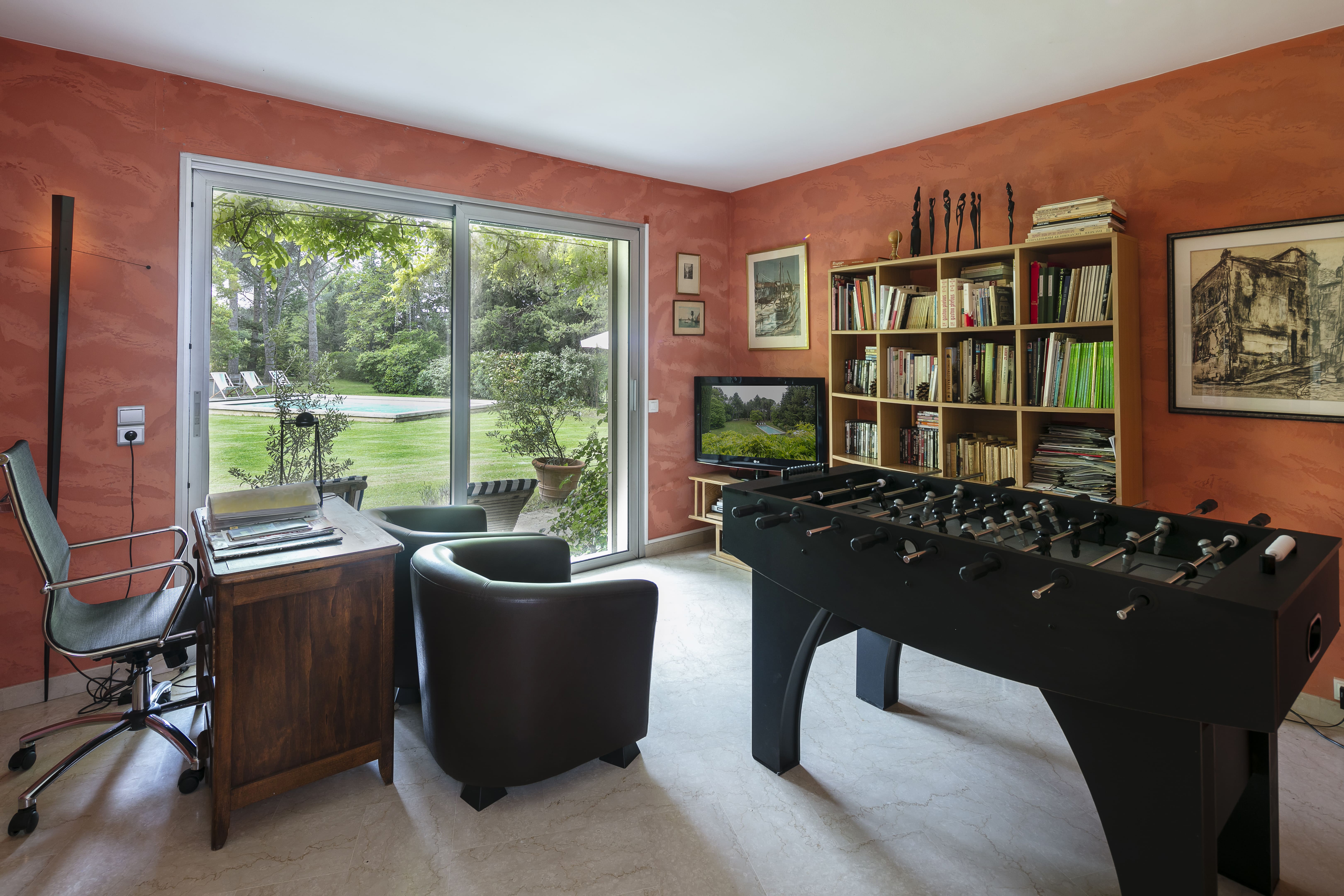Les équipements de loisirs extérieurs incluent un boulodrome authentique, une table de ping-pong et un barbecue Weber professionnel, parfaits pour des moments conviviaux en famille ou entre amis. L'espace de travail avec bureau et bibliothèque, équipé de la fibre optique et du WiFi haut débit, permet également d'allier détente et productivité.